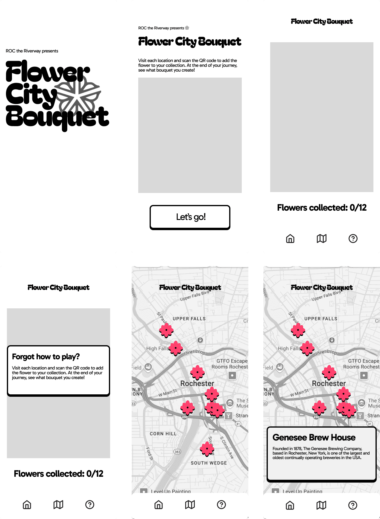 ROC the Riverway is an initiative in Rochester, NY, designed to connect residents and visitors with the city and get them outside and involved in the community. Flower City Garden uses location-based gameplay to create a playful, interactive experience. Through location-based gameplay, users are incentivized to visit local landmarks, businesses, and ROC the Riverway developments through meaningful interaction.