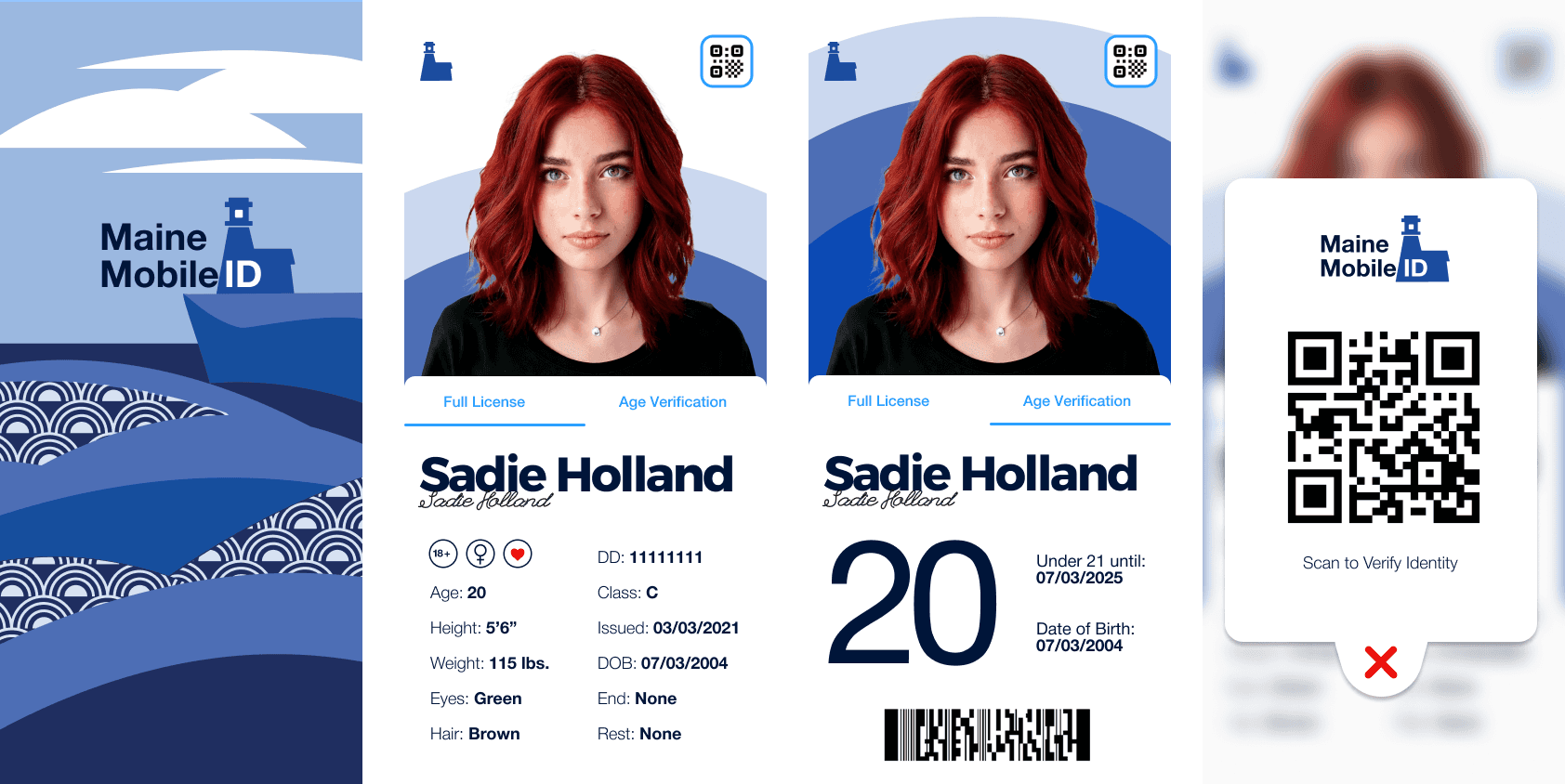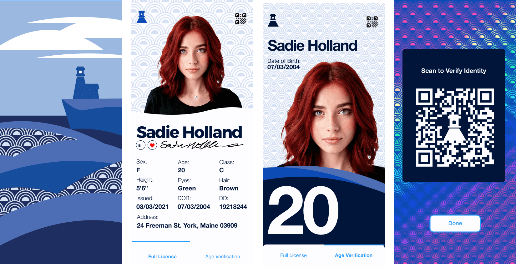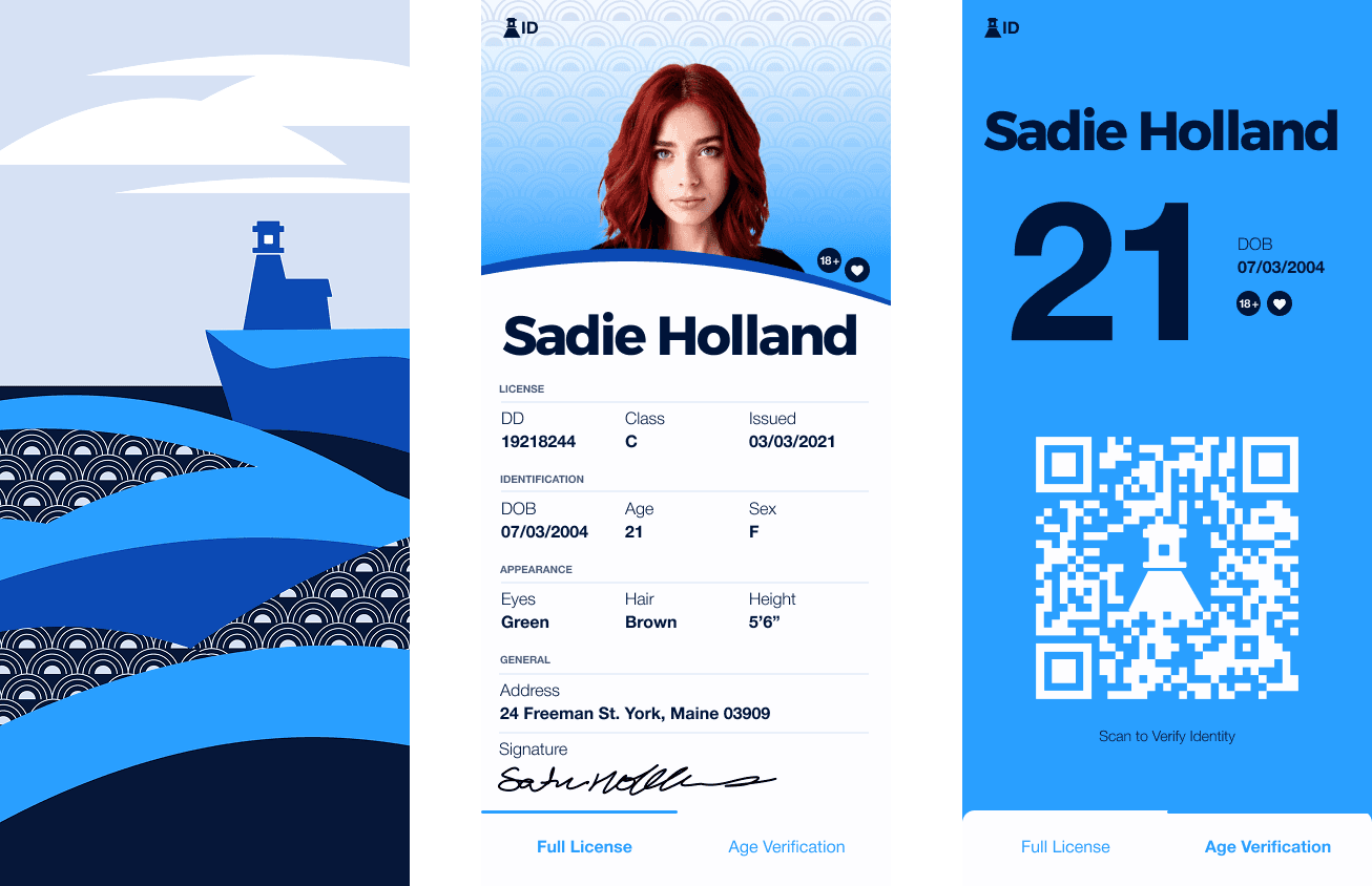 A physical ID can be lost, stolen, damaged, or destroyed. With a mobile ID, you always have it on hand. The biggest barrier with digital IDs is that users don’t trust their information is safe. The goal of this project was to make a design that makes the user feel secure while emphasizing Maine's unique identity.