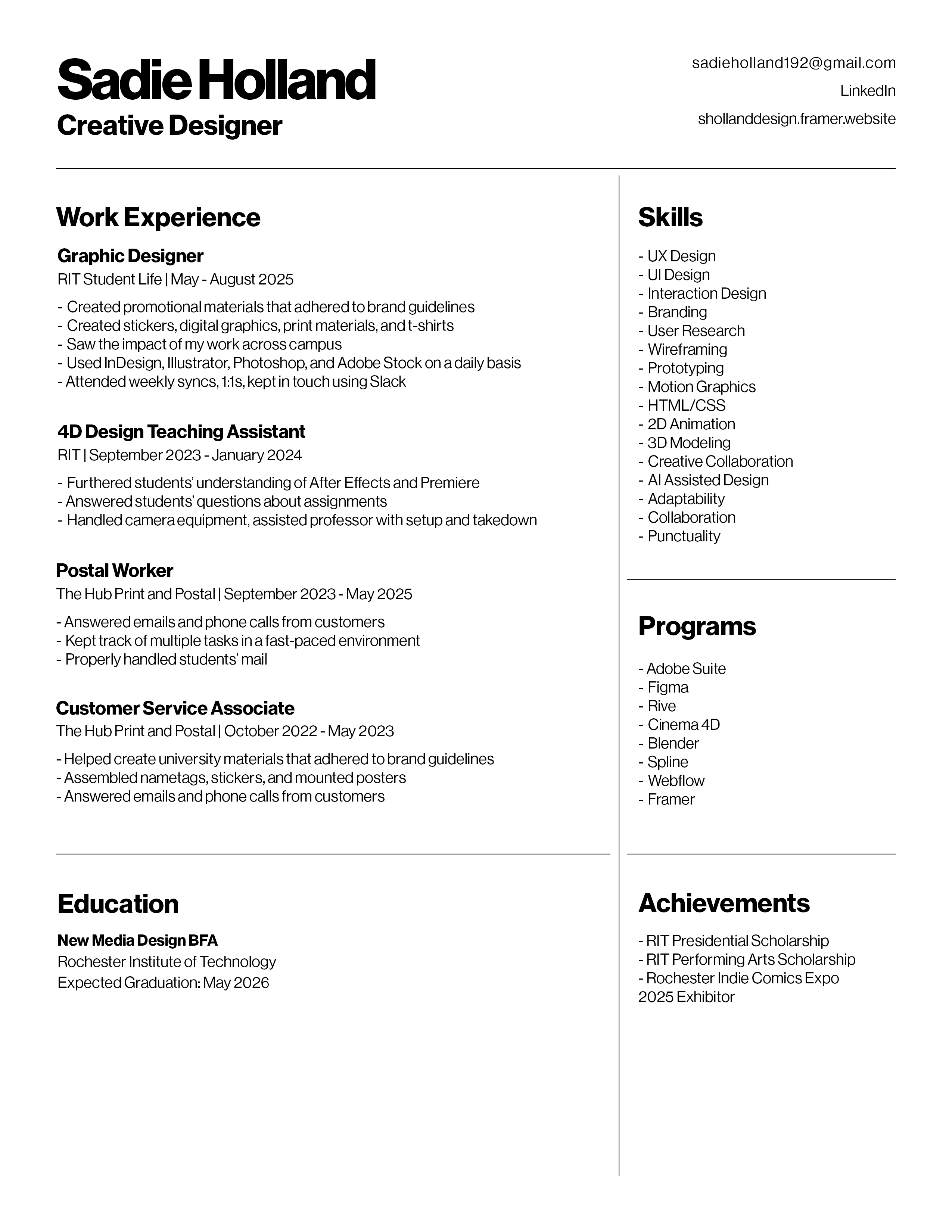 Get in touch: sadieholland192@gmail.com